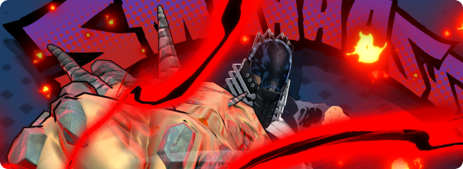 ![]() Se lanza en dirección hacia su objetivo y lo golpea. Se puede combinar con otros dones especiales manteniendo pulsado el botón mientras se prepara: Don especial α: aumenta la velocidad de movimiento y la distancia de carga, infligiendo más daño durante la misma. Don especial β: genera una onda de choque eléctrico tras la carga, paralizando al enemigo. Dones especiales α + β: además de sus mejoras respectivas, ataca con una onda de choque de largo alcance. |